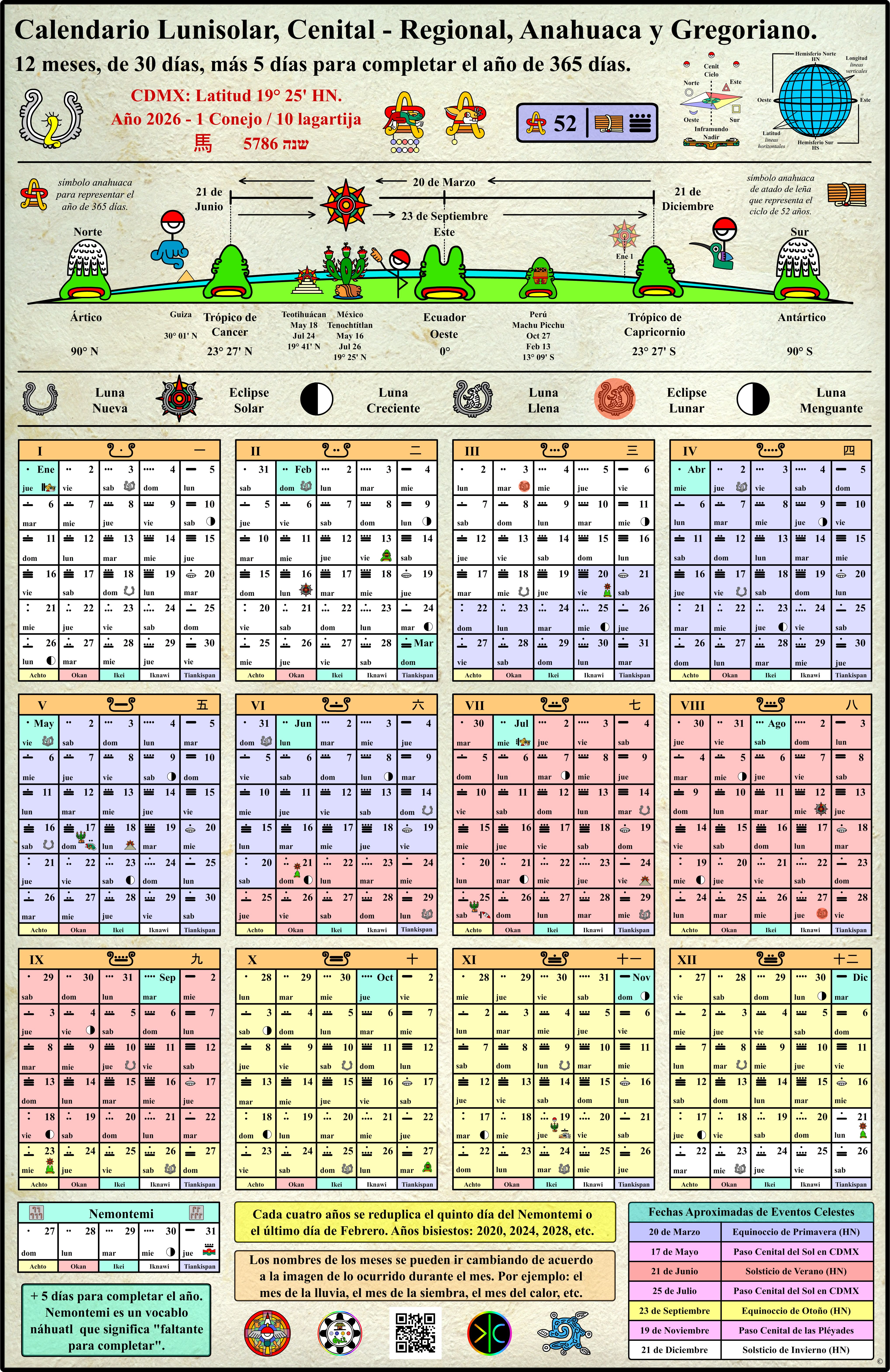 - el calendario cenital regional (CCR) es un calendario híbrido entre el calendario del anahuaca (B) y el calendario gregoriano (A). une ambas realidades pero proyecta otra realidad